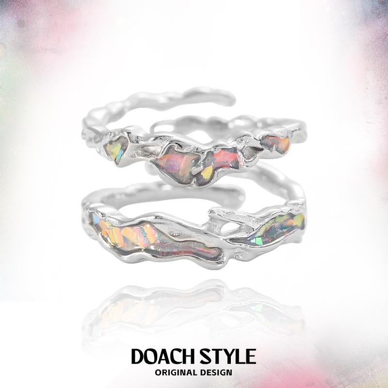Colorful aurora sterling silver ring female niche design cold style high-end sense of opening couple ring new index finger ring