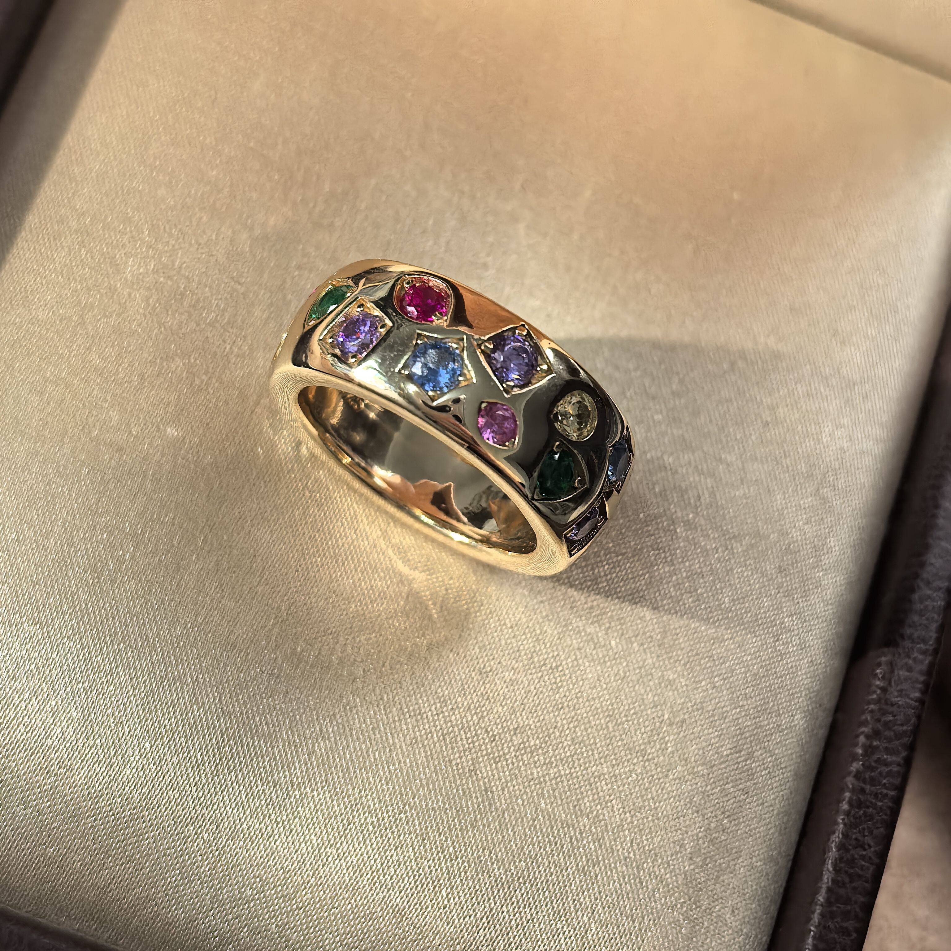 Italy Quan Zhilong's S925 sterling silver gold-plated lab-colored gemstone ring High Jewelry Jewelry
