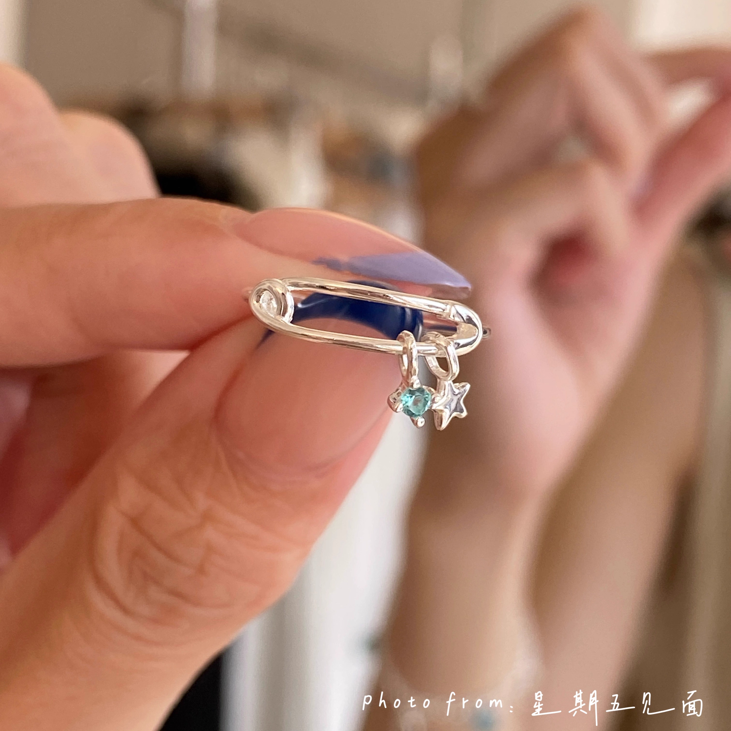 Friday meeting | Original design paper clip tail ring sliding star pendant all-over sterling silver S925 ring