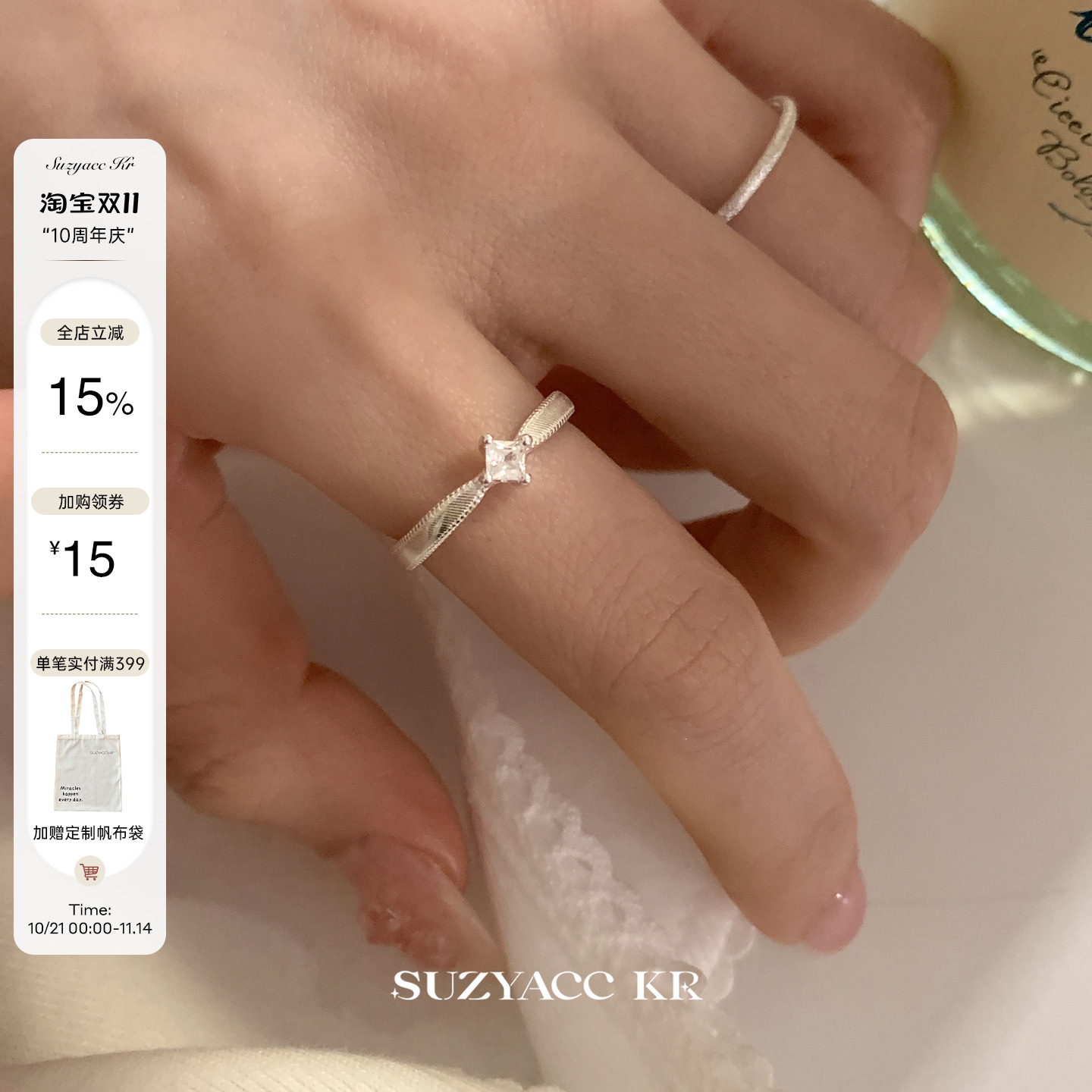 suzyacc kr niche design square diamond starlight frosted ring light luxury retro high-end index finger ring ring for women