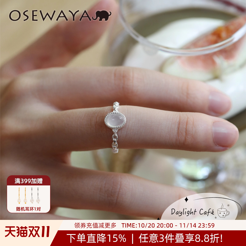OSEWAYA ring niche design imitation white onyx open ring simple and versatile high-end ins style S925 silver