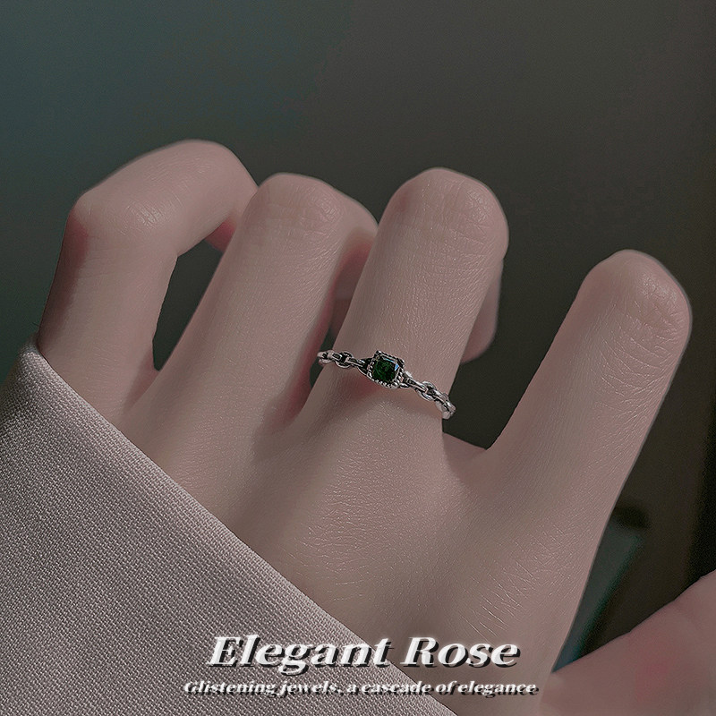 Elegant Rose "Noble and Elegant" small sugar cube ring sterling silver fashion temperament emerald square ring