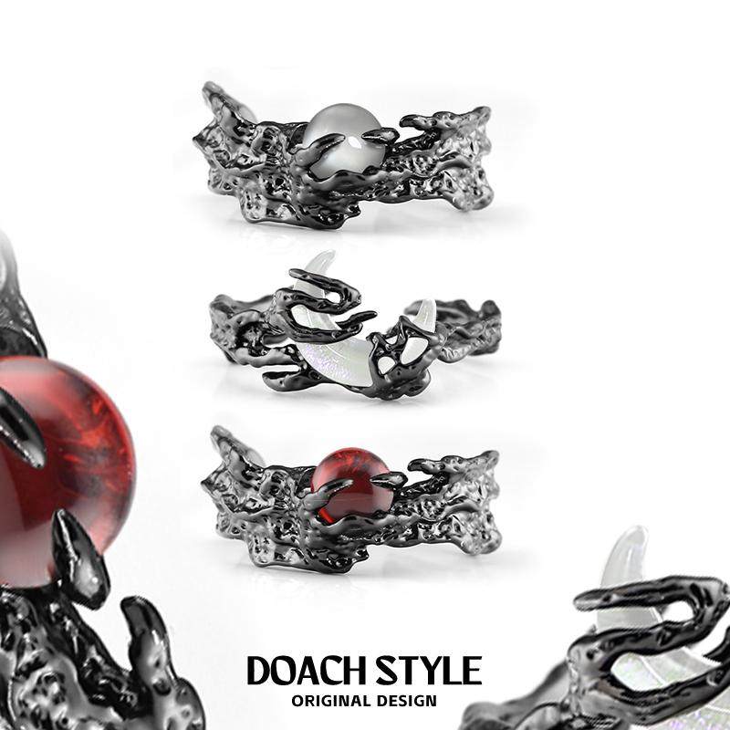 Red sun and white moon couple ring sterling silver ring female niche design light luxury high-end sense 520 gift for girlfriend
