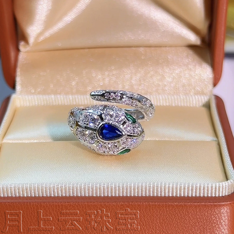 Snake head sapphire ring all-over S925 sterling silver serpentine full diamond ring light luxury luxury luxury wedding dinner gift