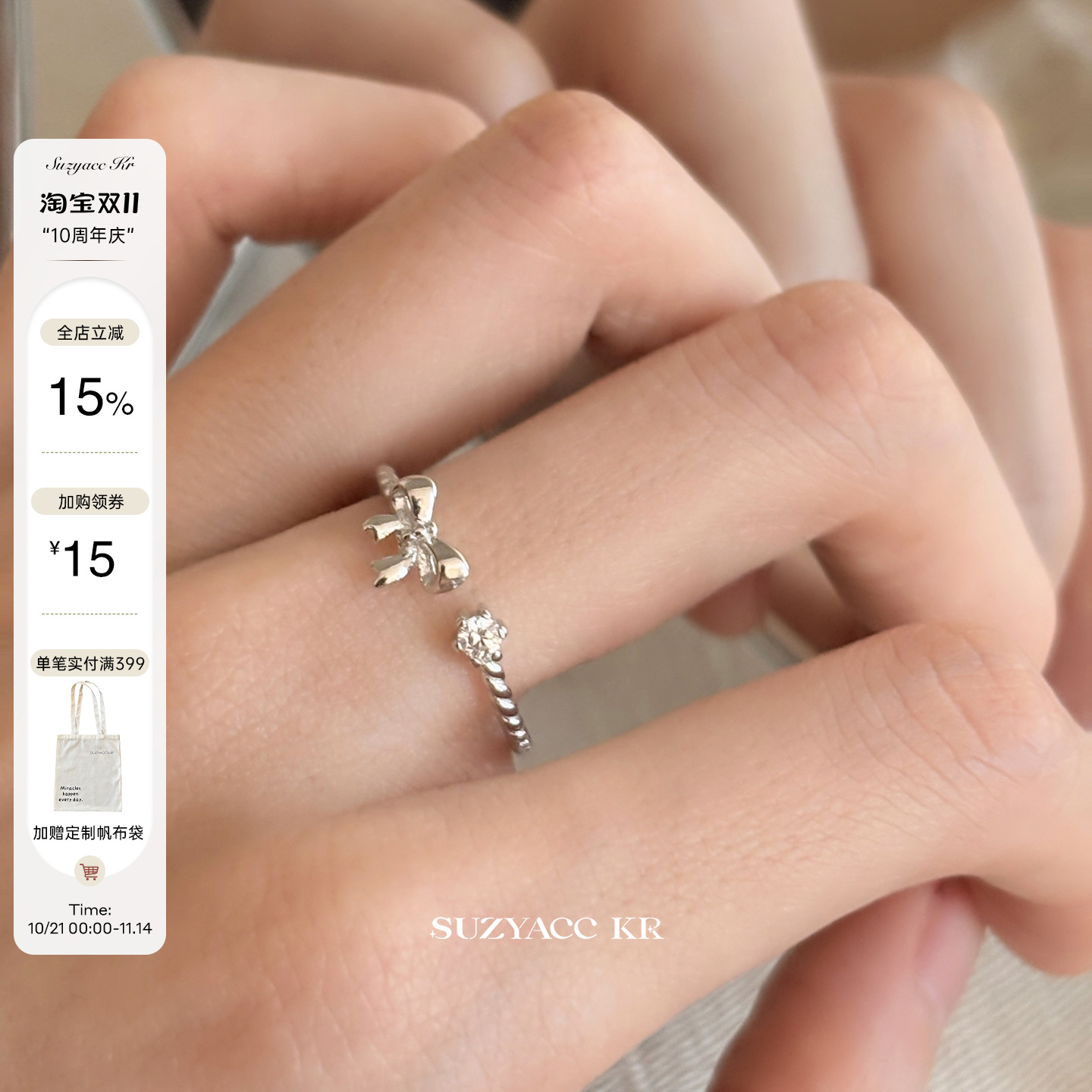 suzyacc kr exquisite sterling silver slim bow rhinestone ring women's light luxury niche gentle temperament index finger ring