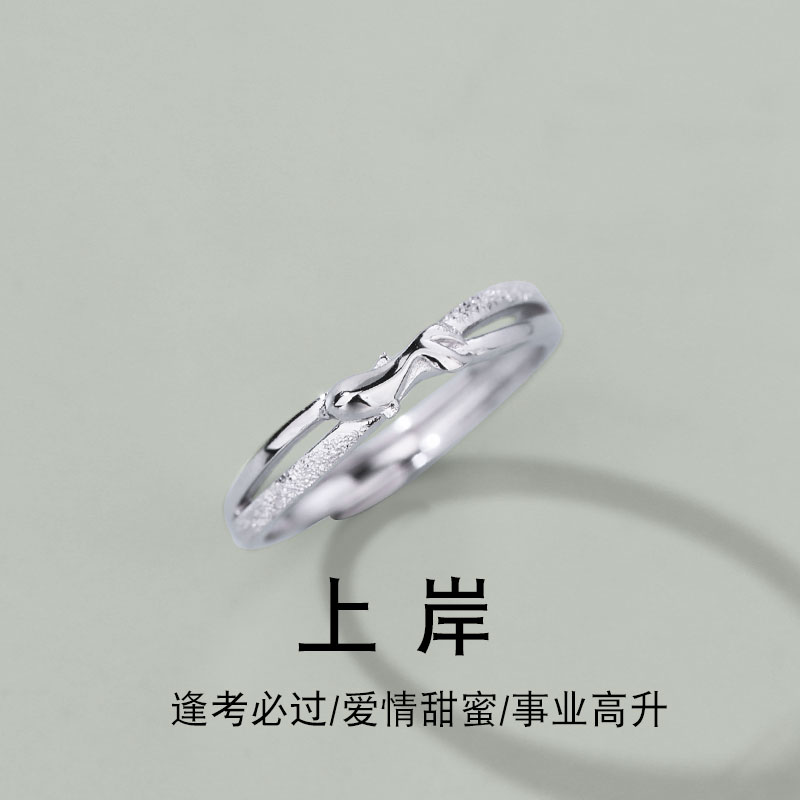 Landing good luck ring sterling silver 999 opening adjustable single index finger niche design engraving birthday gift girl