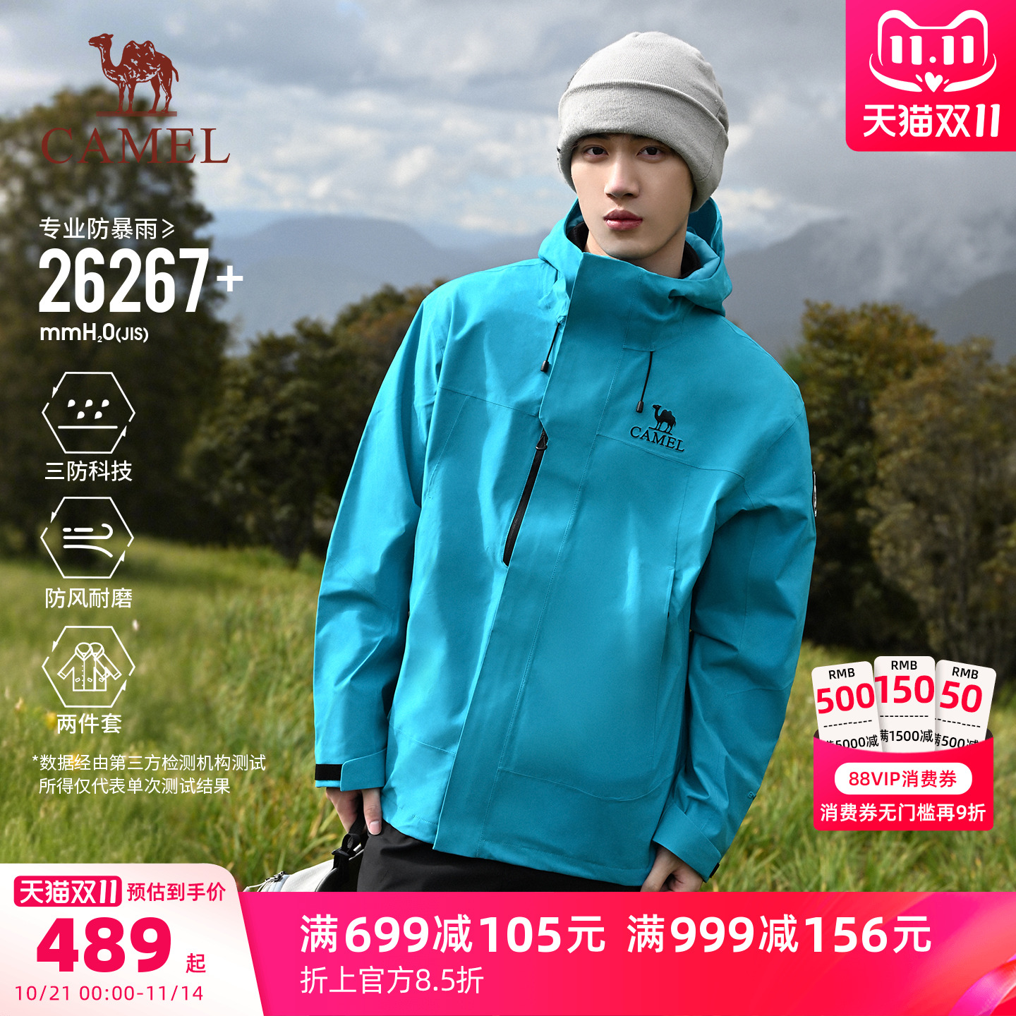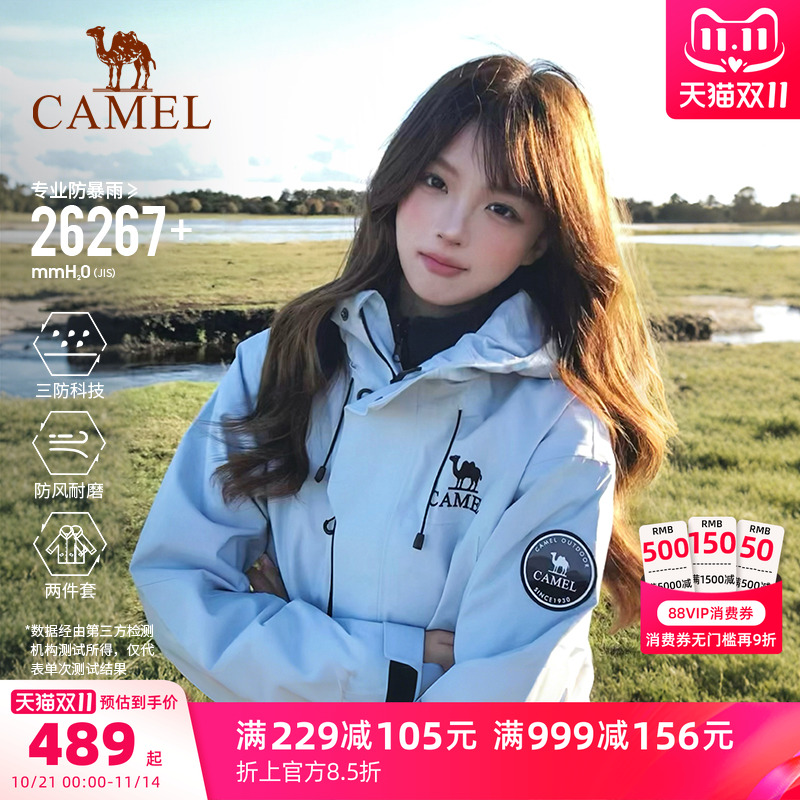 Camel outdoor rock field jacket men's and women's 3-in-1 detachable two-piece waterproof jacket tourist mountaineering suit