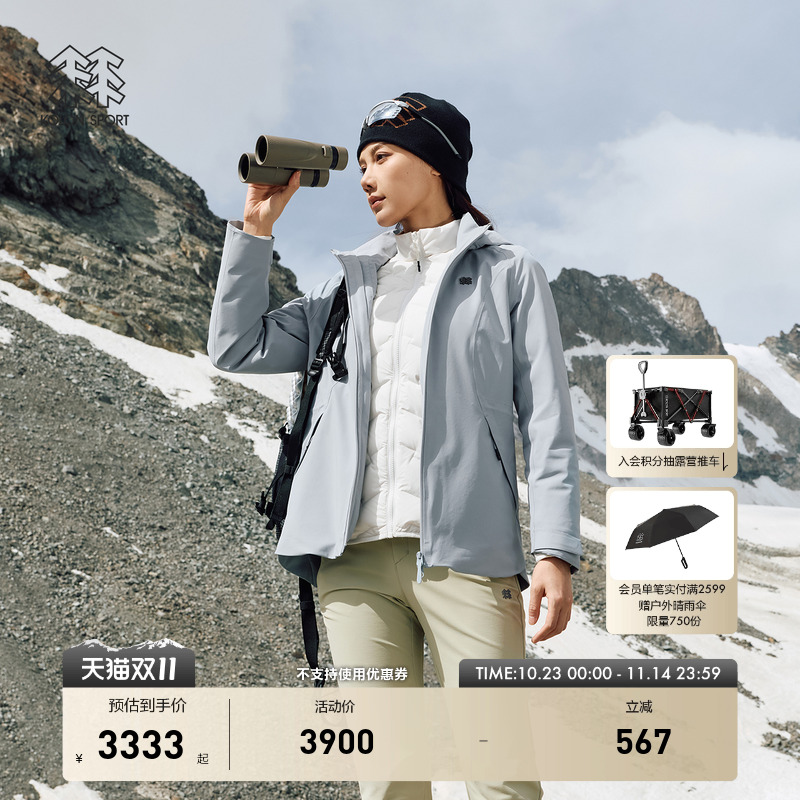 KOLON SPORT Level 2 water-repellent windproof men's and women's hooded down 3-in-1 jacket