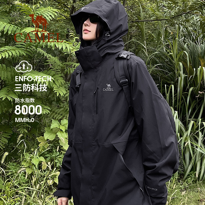 Camel outdoor 3-in-1 jacket women's 2025 autumn and winter windproof and rainproof black travel hiking suit jacket for men