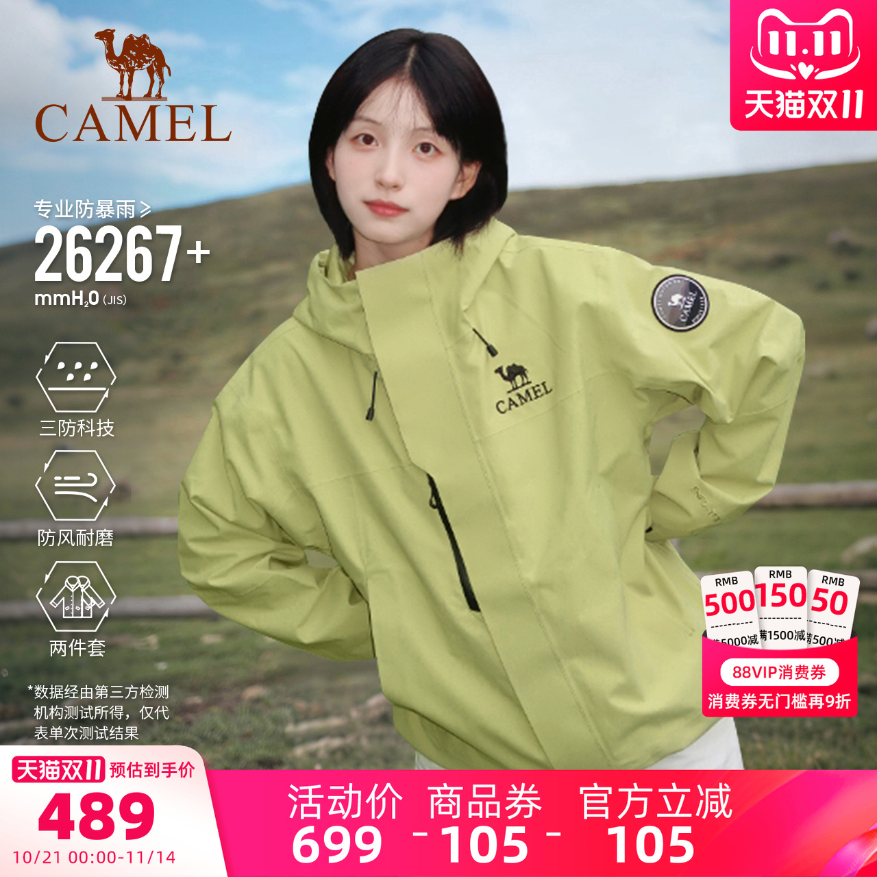 Di Lieba Same Style|Camel Outdoor Jacket 3-in-1 Men's and Women's Green Fruit Green King Kaijia ICON Jacket