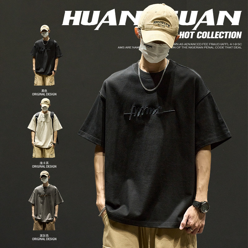 Heavy simple style T-shirt summer boys' American versatile casual cotton top ins trendy brand high-end short sleeves