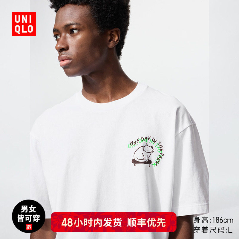 Priority SF Uniqlo cooperation men's and women's straight shoulder master T-round neck T-shirt short-sleeved cotton casual 475356