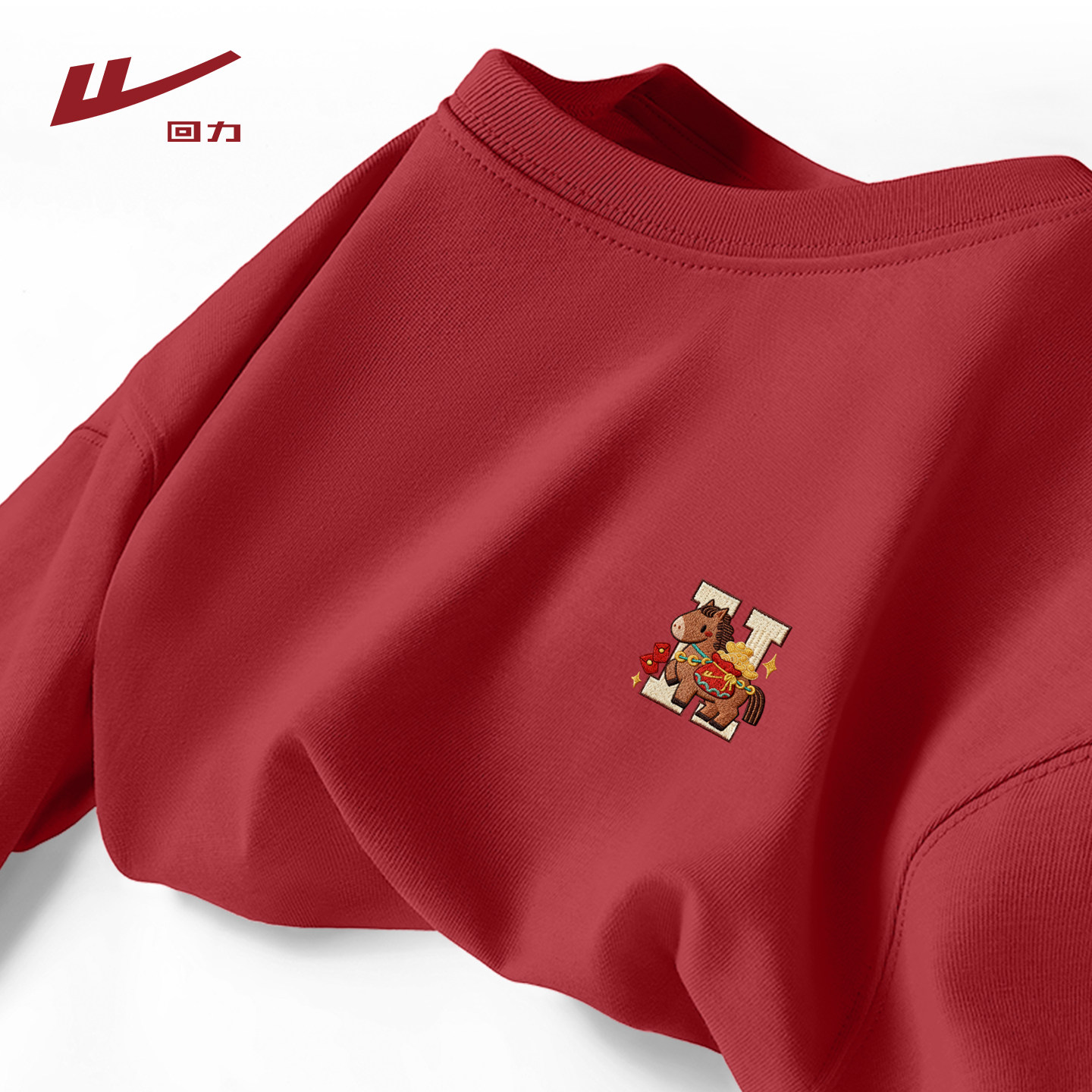 Huili Men's Red Short Sleeve T-Shirt 2026 New Design Sense Gift Bao Pony Pure Cotton Year of the Horse Natal Year Clothes Q