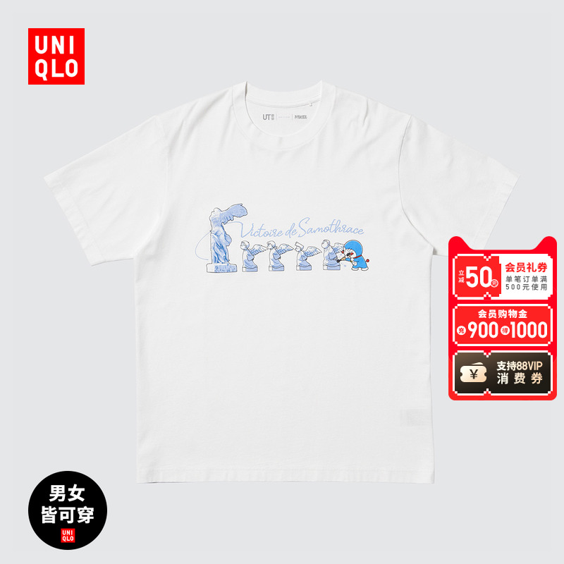 Uniqlo Men's Women's UT Doraemon Encounters Louvre Print Short Sleeve T-Shirt 480134