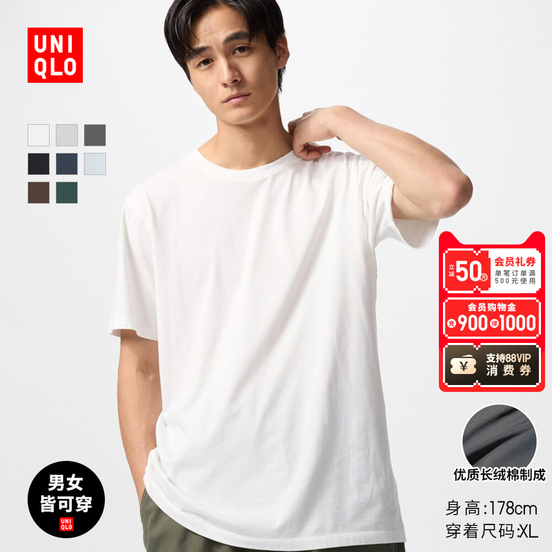 Uniqlo Men's and Women's Crew Neck T-Shirt SUPIMA COTTON Short Sleeve Cotton Texture 475357 465494
