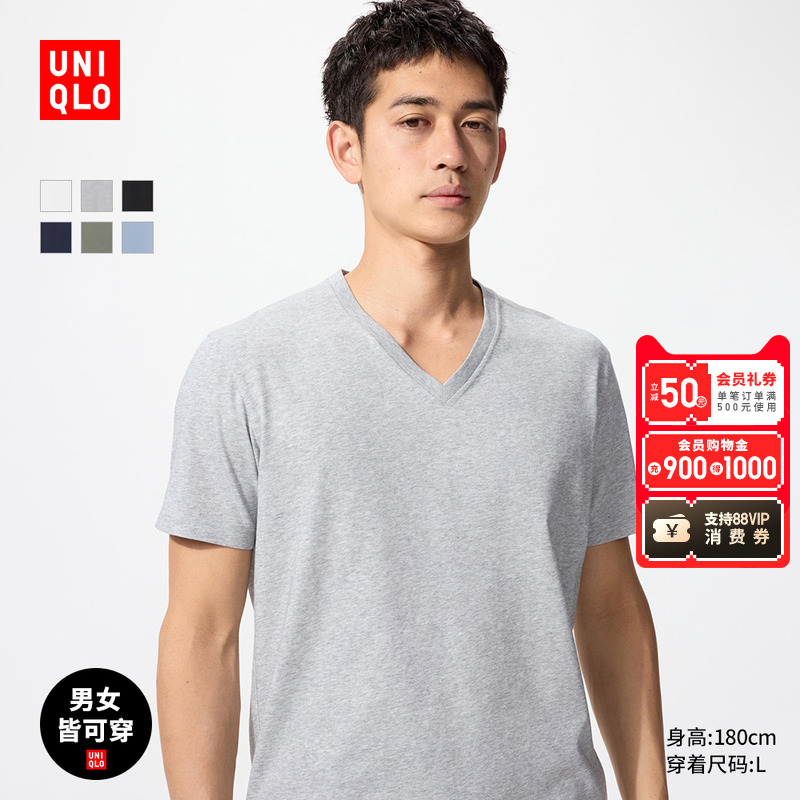 Uniqlo Men's Women's Couple Versatile T Quick Dry V-Neck T-Shirt Casual Short Sleeve 475376 455356
