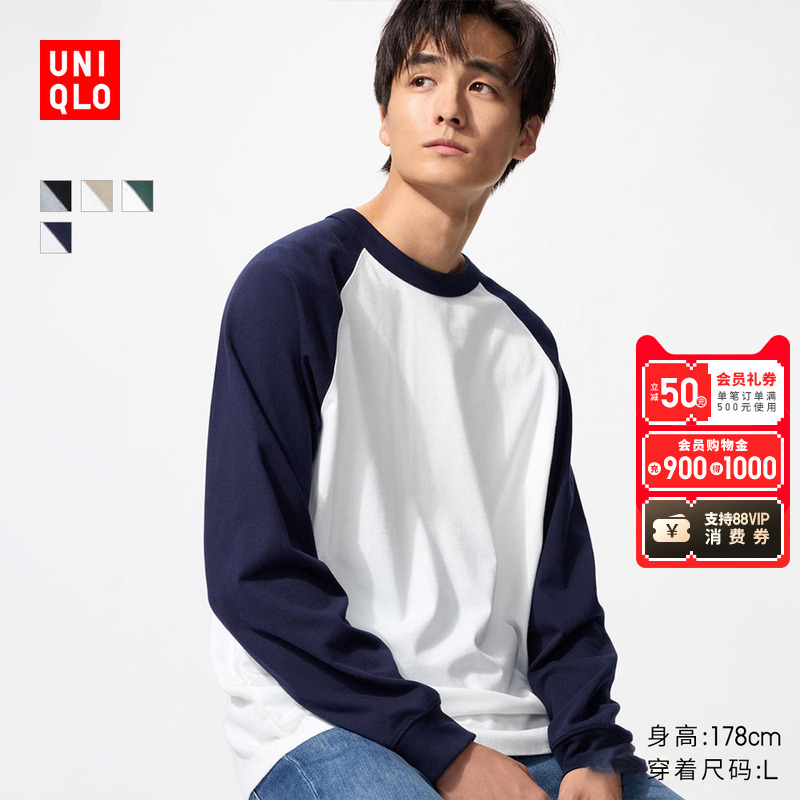 Uniqlo Men's Women's Loose Ralan Sleeve T-Shirt/Casual Long Sleeve Top 25 Fall/Winter New 484016