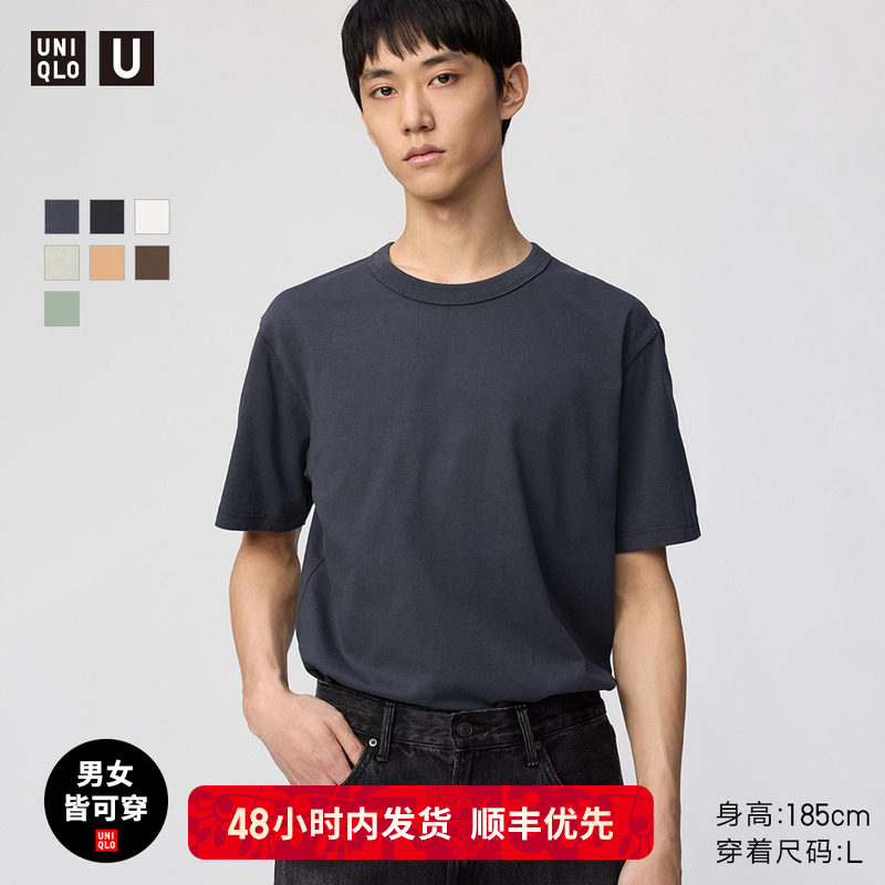Priority SF Uniqlo cooperation model/men's and women's clothing master T front shoulder crew neck T-shirt short sleeve cotton 482296