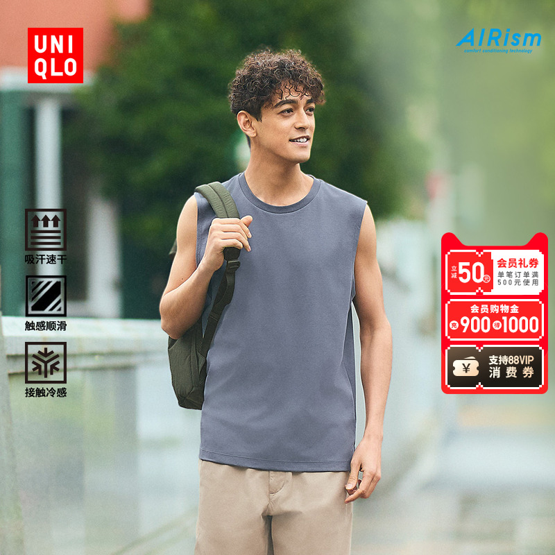 Uniqlo Uniqlo Unisex AIRism Cotton Blend Sleeveless T-Shirt Vest Shoulder Sweat Wicking Breathable 475363