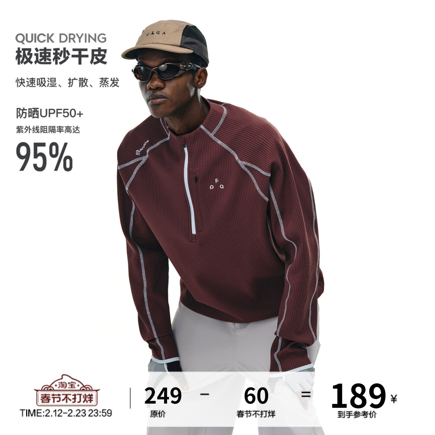 FPA quick-drying UPF50+ sunscreen sports long sleeve spring and autumn national tide half zipper half high neck loose couple T-shirt
