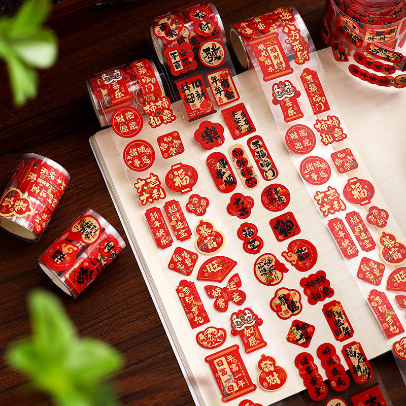 Gyro New Year's sticker 2026 Chinese New Year creative self-adhesive sealing sticker Spring Festival small blessing word hot stamping label sticker