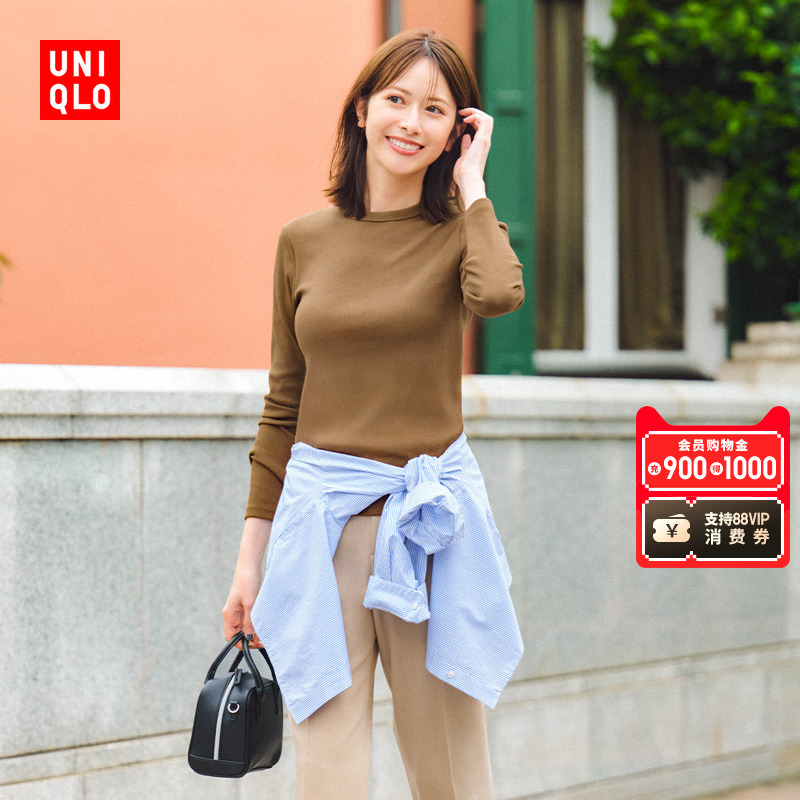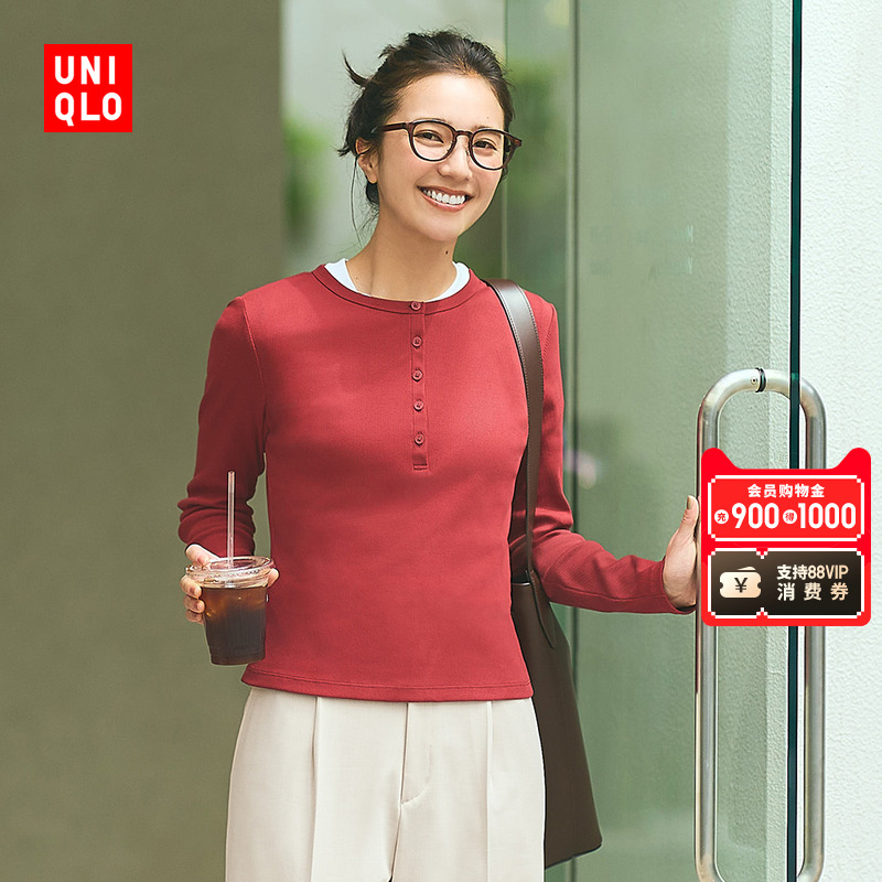 Uniqlo Women's Ribbed Henry Collar T-Shirt/Long Sleeve Slim Short Inner Bottom 25 New 479591