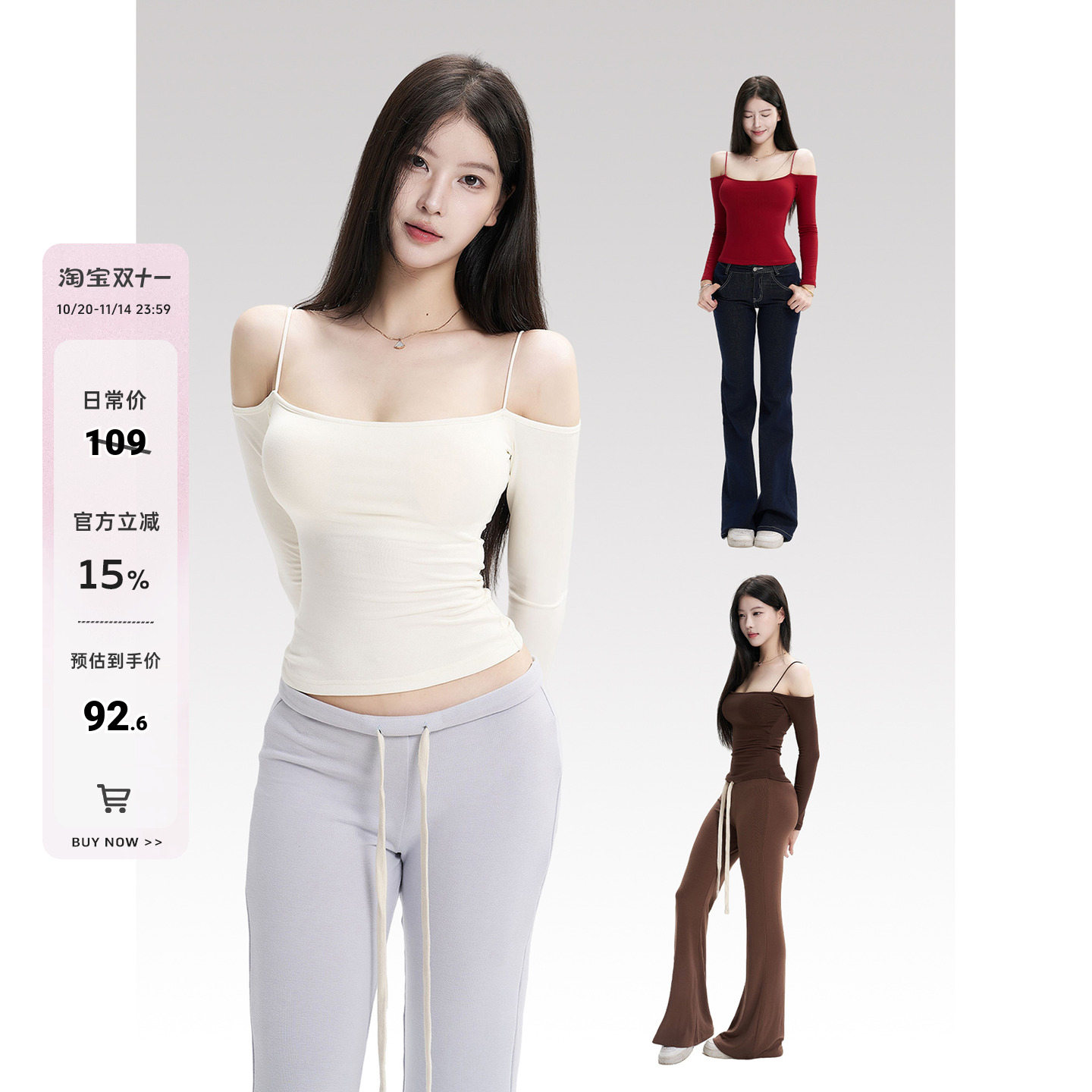 it:CHOCOOLATE sweet and spicy black off-the-shoulder long-sleeved shirt for women pure desire design slim suspender T-shirt top