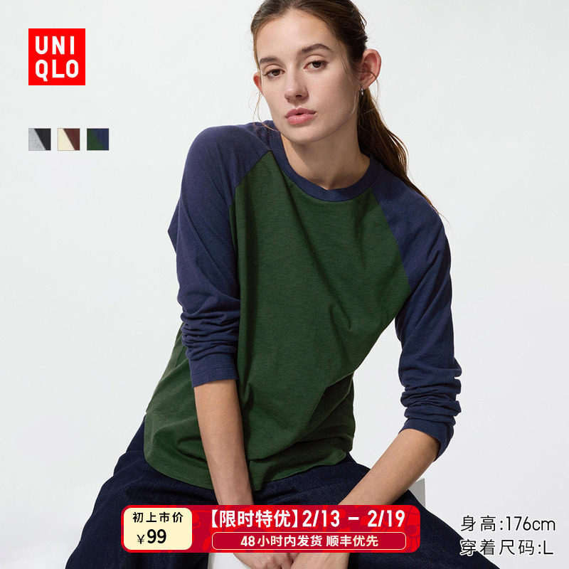 Priority SF Uniqlo Women's Slub Ralan Sleeve Contrast T-Shirt/Long Sleeve 26 Spring and Summer New 484869