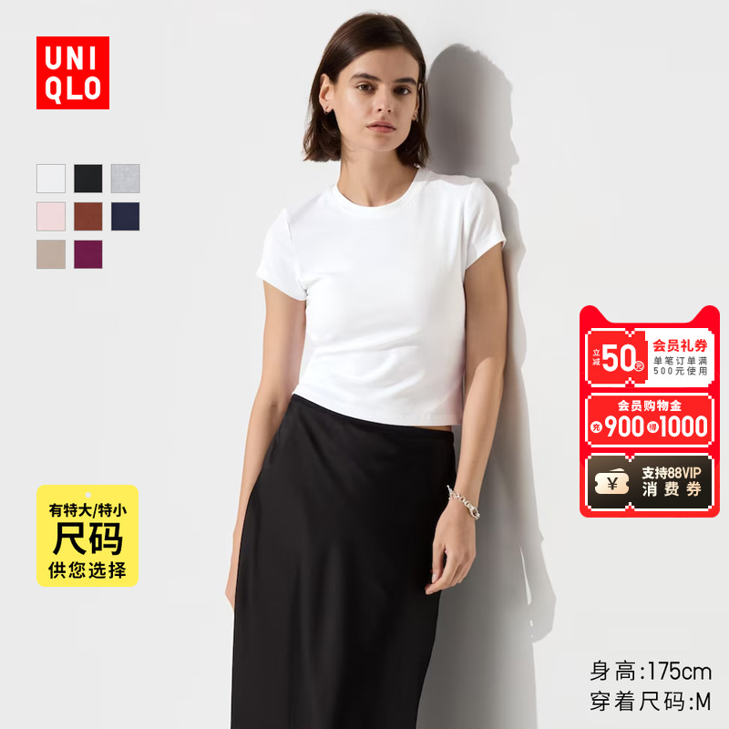 Uniqlo women's crew neck short T-shirt short sleeve mini T slim and versatile hot girl slimming base new 474410