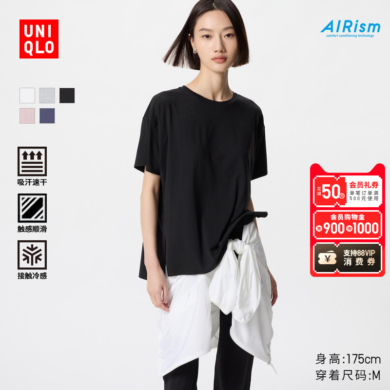 Uniqlo women's AIRism T-shirt/short-sleeved loose top 474415