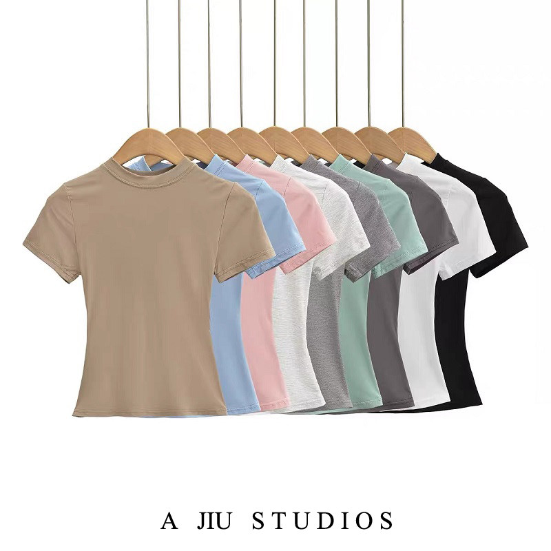 This year's popular beautiful T-shirt front shoulder cotton short-sleeved slim women's 2026 summer solid color base top