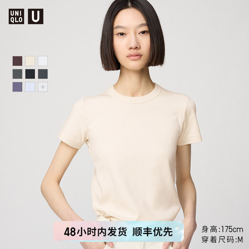 Priority SF Uniqlo cooperation women's fashion master T-shirt crew neck T-shirt short sleeve front shoulder plain white T474404