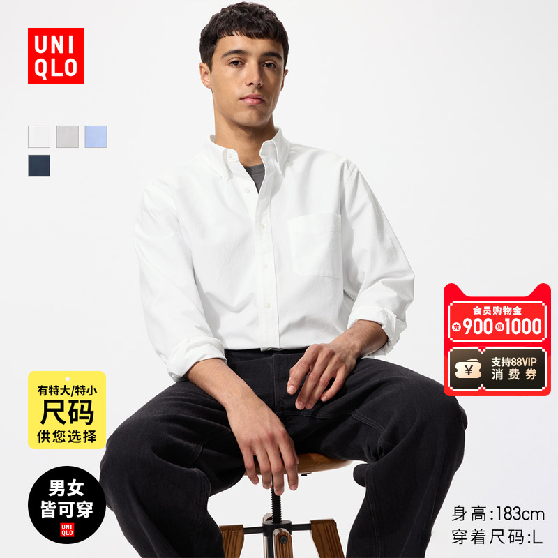 Uniqlo men's and women's Oxford spun shirts long-sleeved shirts casual plain casual commuter 478086 475998