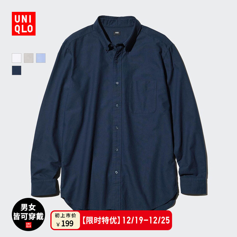 Uniqlo Men's Women's Oxford Spin Shirt/Long Sleeve Shirt Casual Plain Commuter 482445