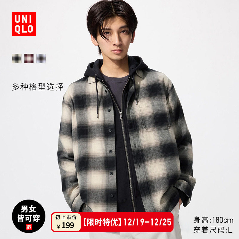 Uniqlo men's and women's flannel plaid shirts long-sleeved shirts and thin coats 25 fall-winter 481224 480767