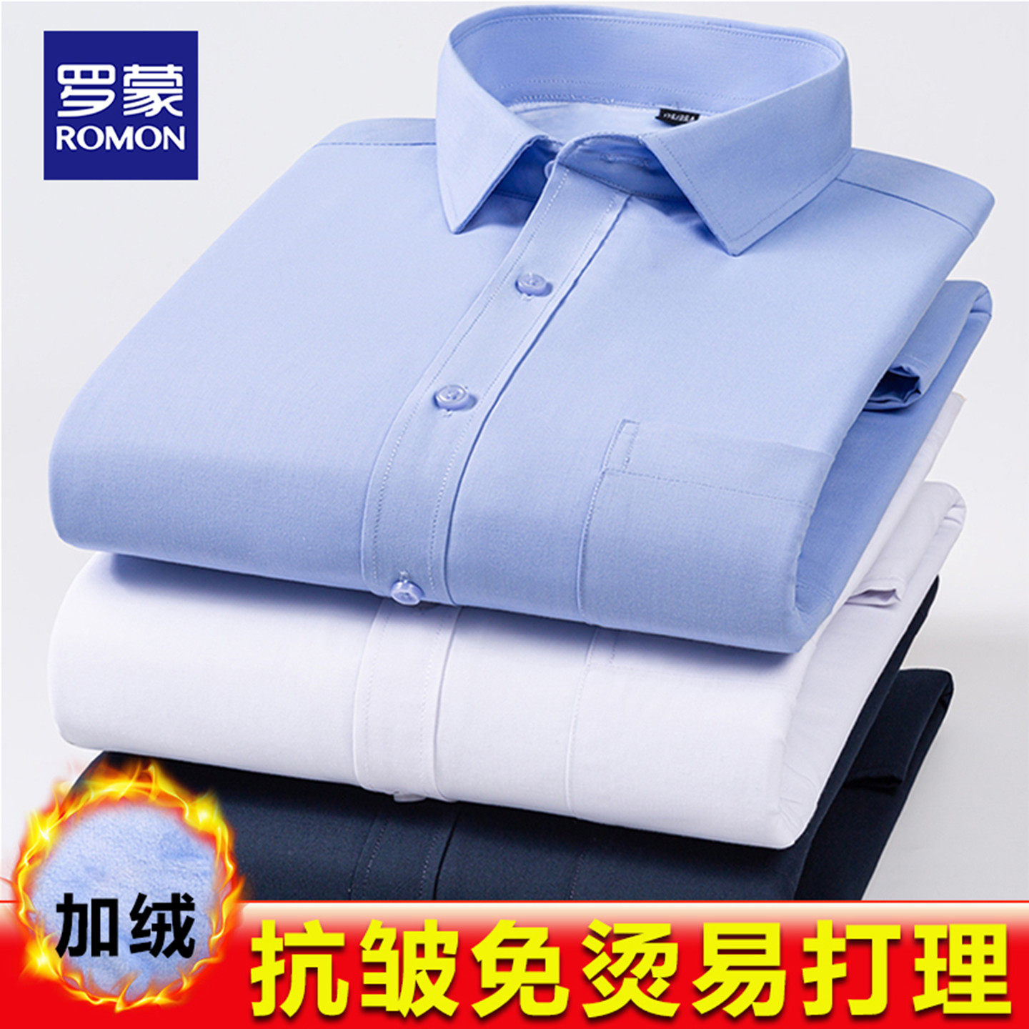 【Fleece and thickening】Romon Warm Shirt Men's Autumn and Winter Plus Size Men's Iron-Free Long Sleeve Shirt Business Formal Wear