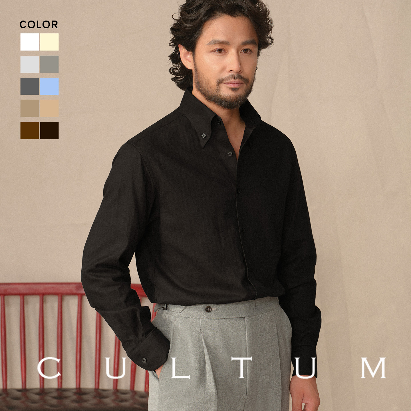 【100% Xinjiang Long-staple Cotton Soft and Warm】CULTUM Italian Large Pointed Button-Collar Shirt Men's Long Sleeve Shirt