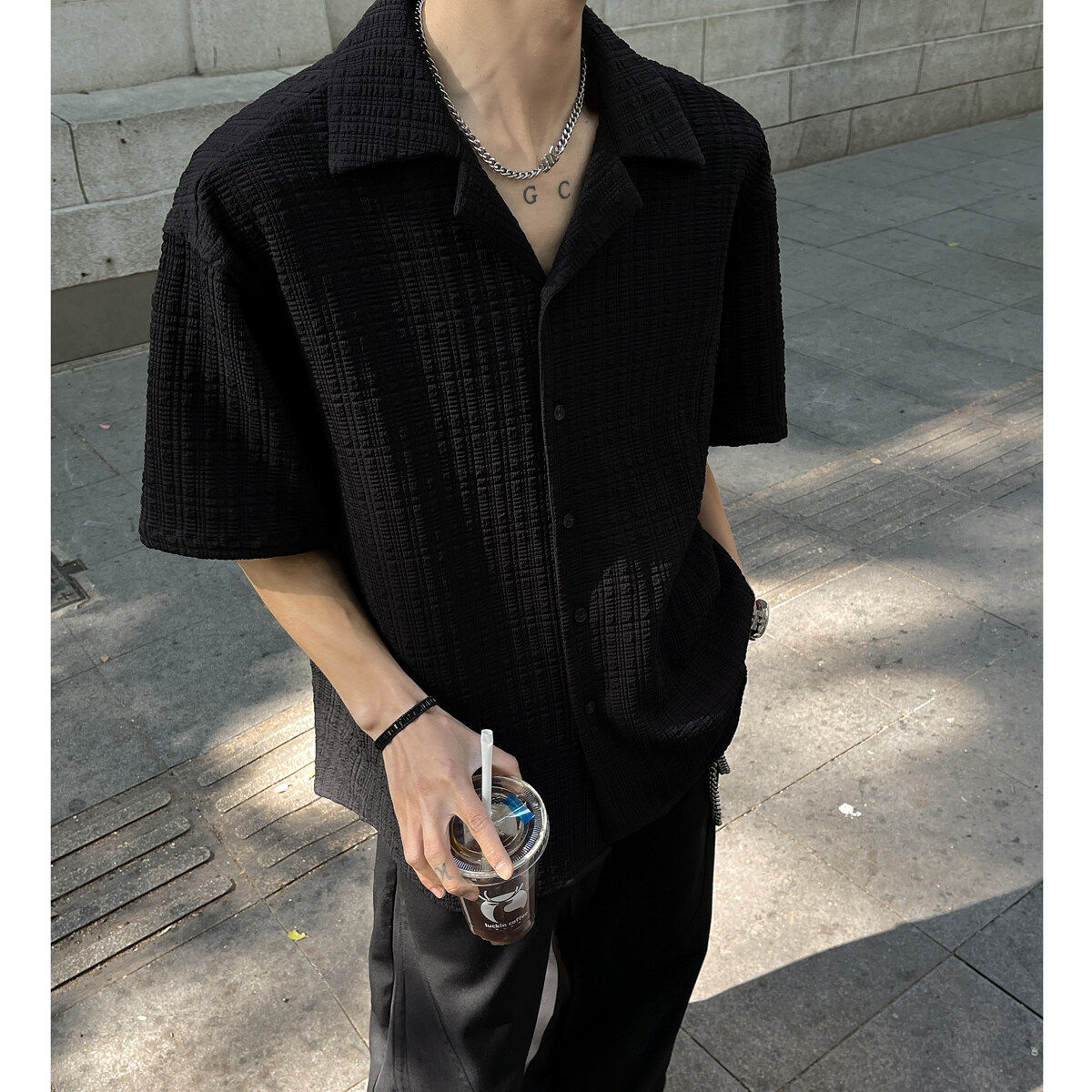 White ascetic Neapolitan long-sleeved shirt for autumn muscular maturity and stability men's tops and slim shirts
