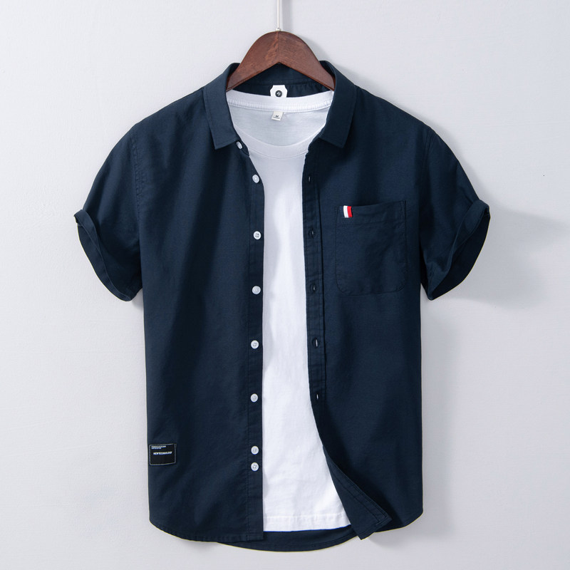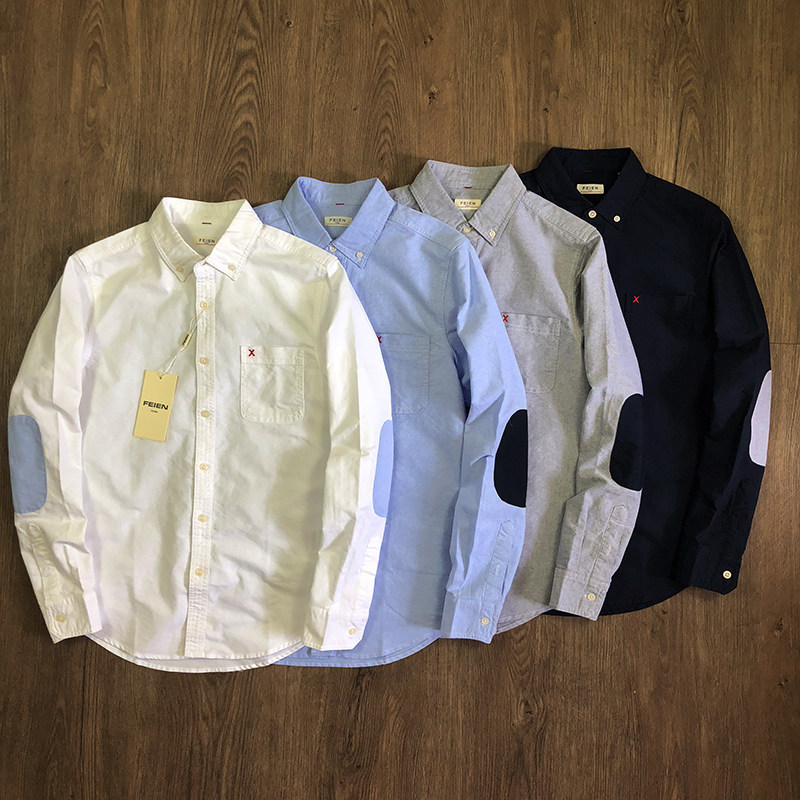 Cabinet price 399 autumn new washed cotton Oxford spun men's patch sleeve shirt versatile casual long sleeve shirt