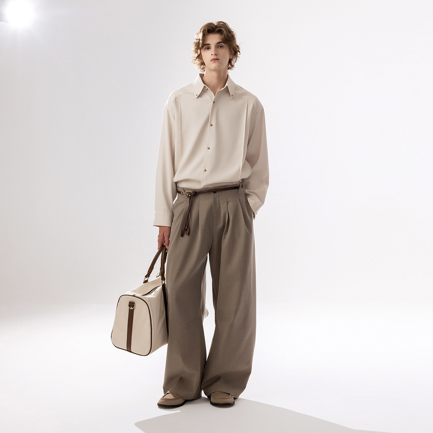 SSUMENAM "Texture" apricot shirt men's long sleeve autumn loose shirt Korean niche design casual