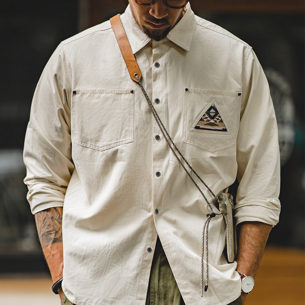Madden workwear American vintage long-sleeved shirt Indian totem cotton lapel casual layered shirt men's spring