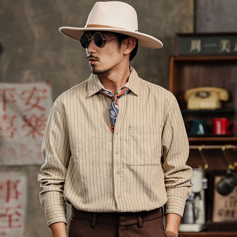 MRCYC men's long-sleeved shirt autumn loose Korean high-end shirt old money style casual solid color shirt