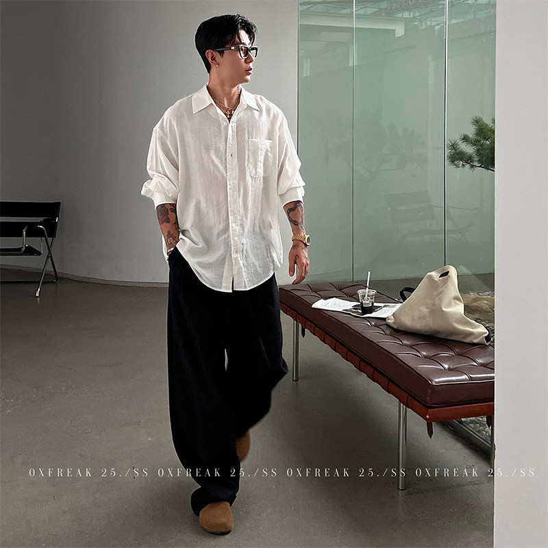 Lazy style, white long-sleeved linen shirt, men's summer old money style wear, casual sunscreen shirt, jacket, thin style