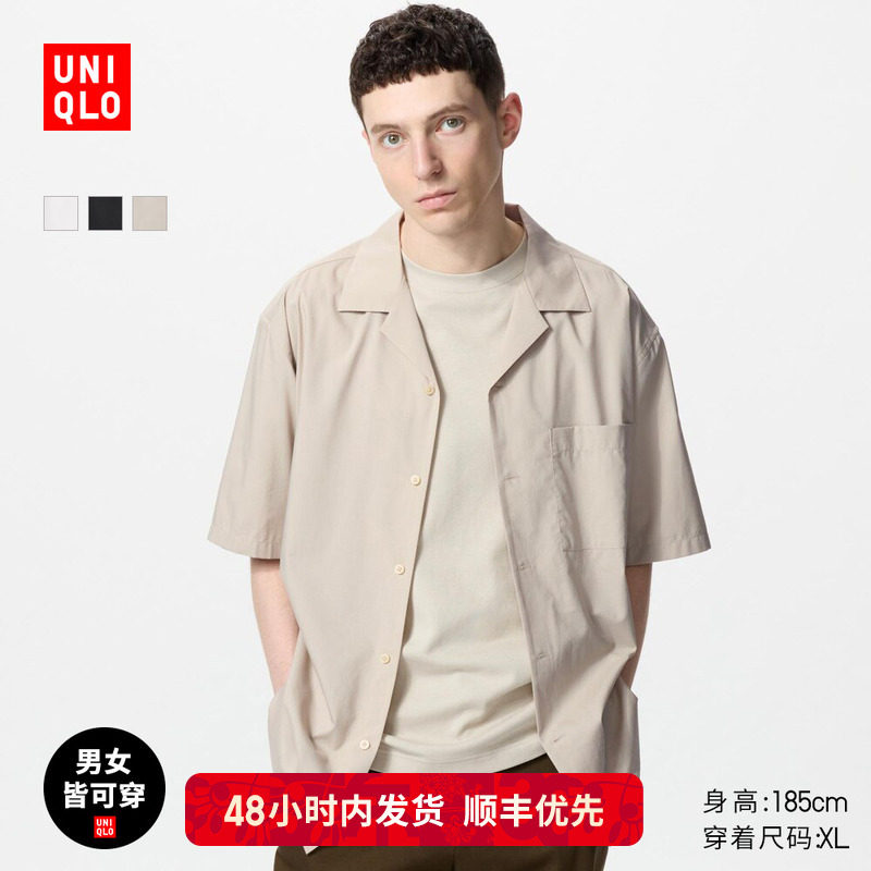 Priority: SF Uniqlo Men's Women's Modal Cotton Blend Open Collar Shirt/Short Sleeve Cuban Collar 474519