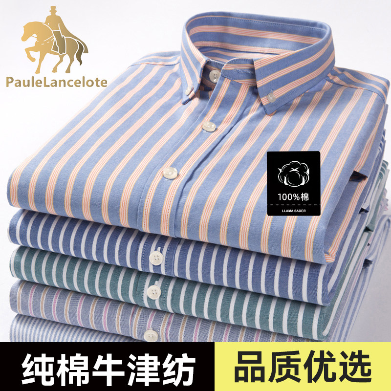 Paul Cotton 100% Striped Long Sleeve Shirt Men's Cotton Oxford Spun Youth Casual Fat Plus Size Shirt