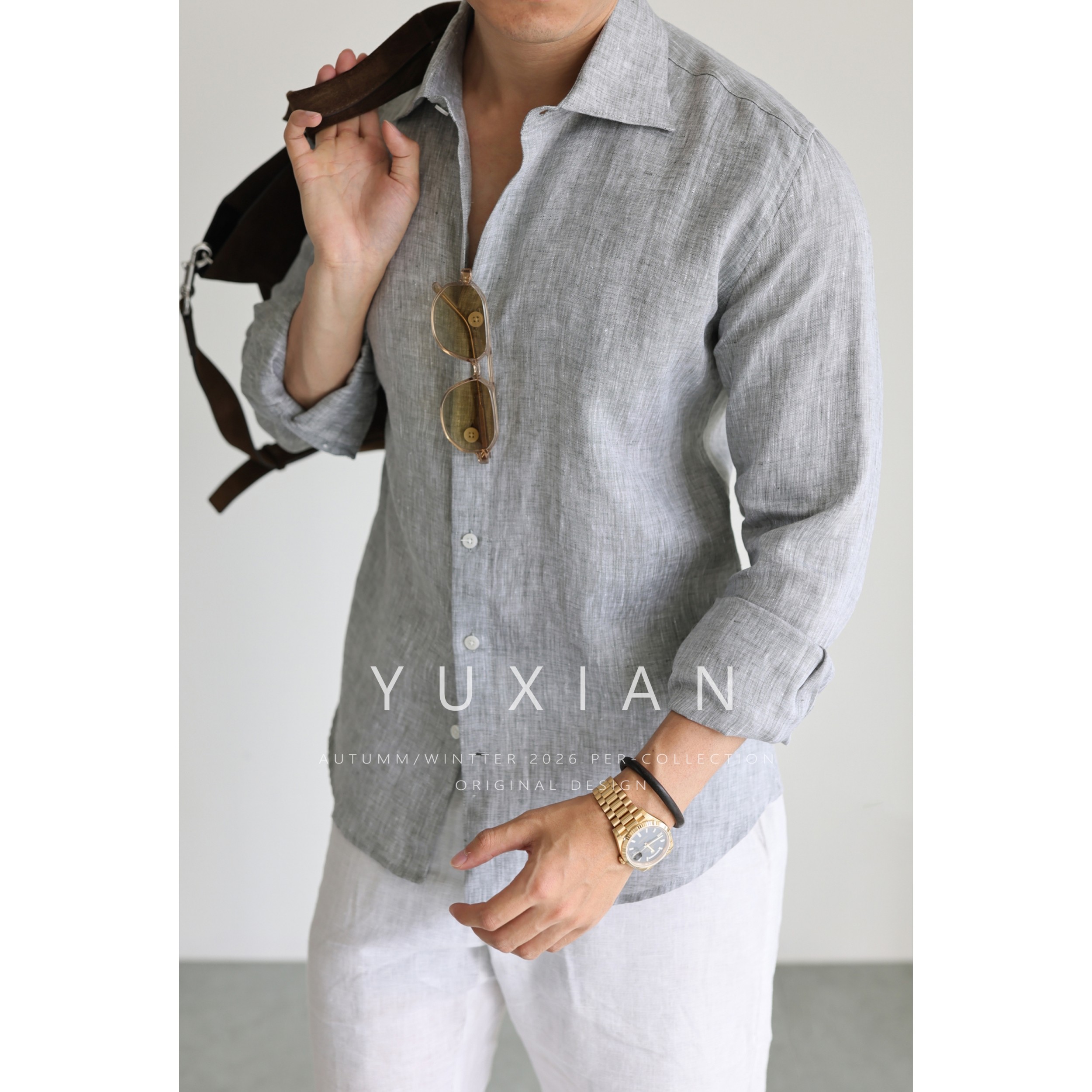 [Two-color linen] old money breathable 100% pure linen dyed long sleeve shirt casual business men's spring and summer