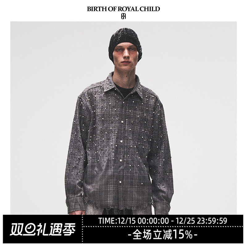 BIRTH OF ROYAL CHILD. BORC [JJ Lin's same style] pearl full diamond plaid shirt man