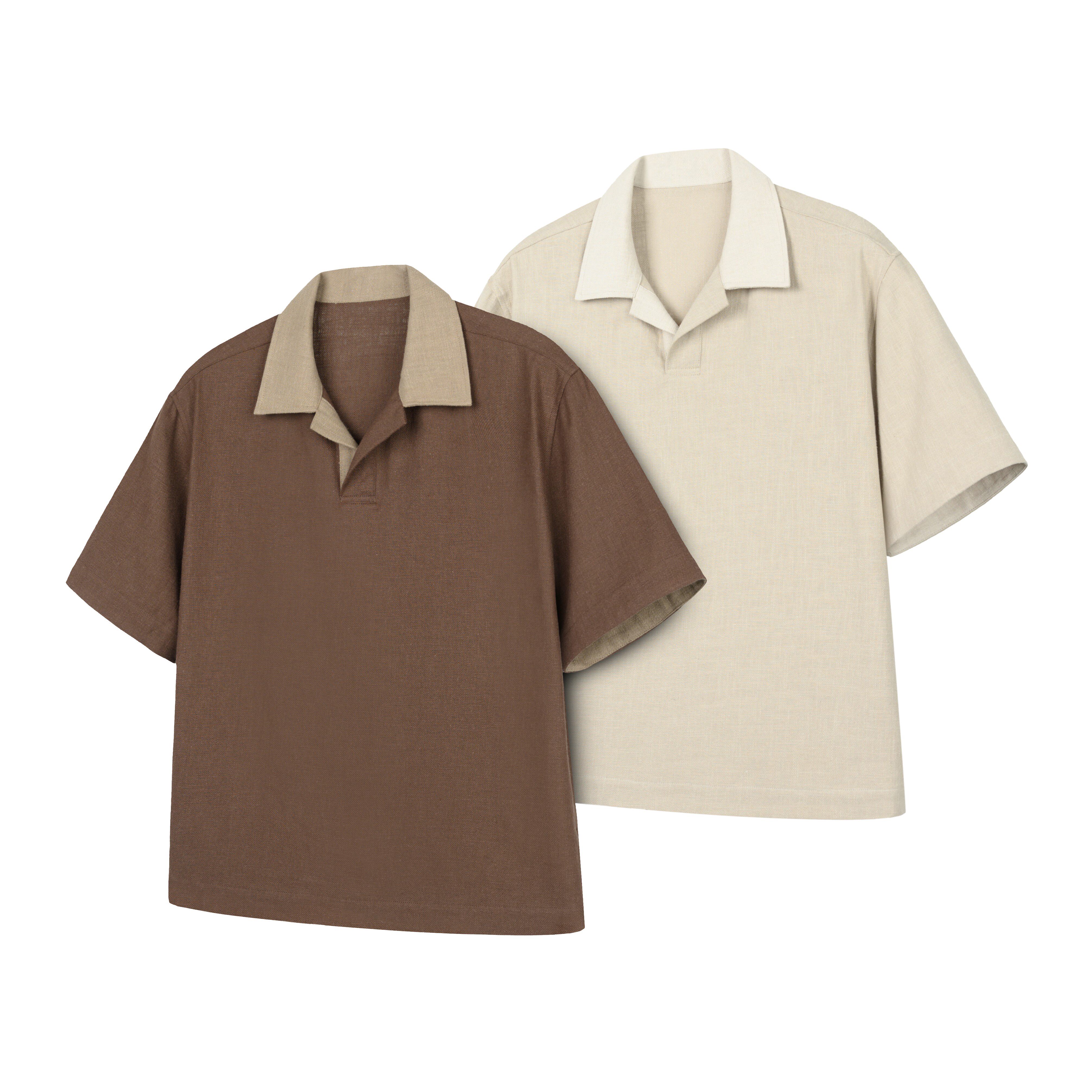 YUXIAN Italian old money 100% linen one-collar shirt breathable casual business long sleeve shirt men's spring and summer