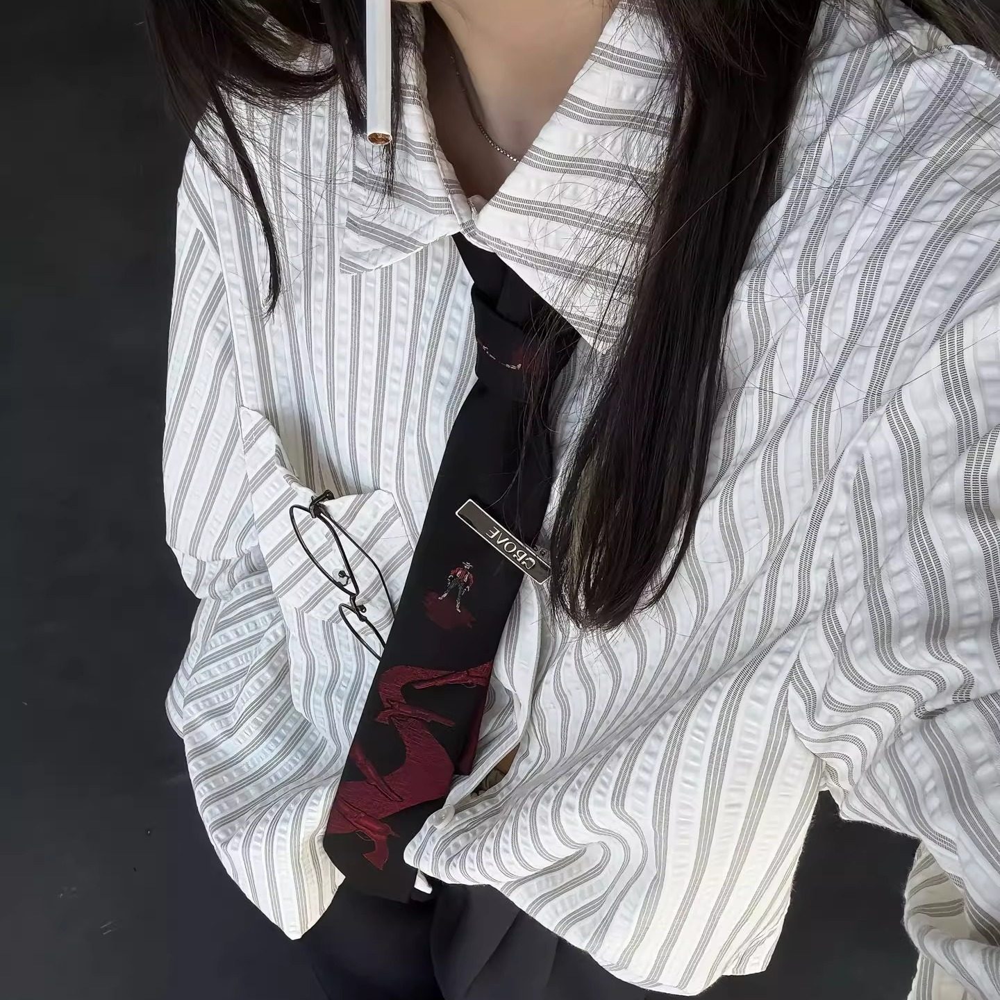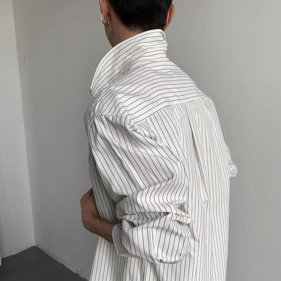 MION long-term Korean version of daily casual striped shirt design lazy style long-sleeved shirt for men and women