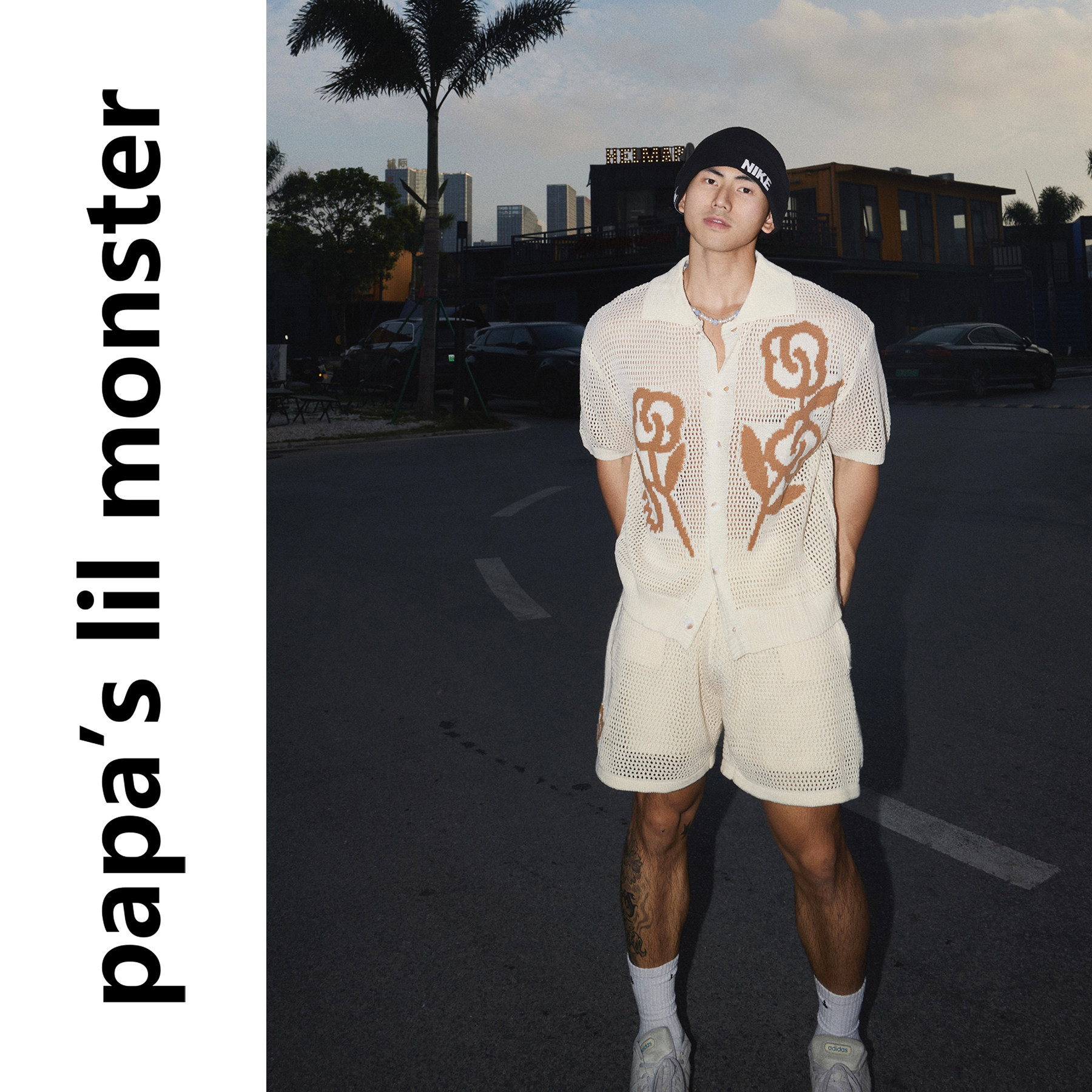 PAPASLILMONSTER [Original] Southern France Provence resort style cut-out shirt beach style shorts